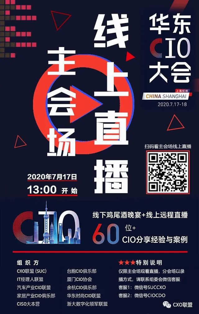 2020华东CIO大会主会场直播+“SUC之夜”颁奖晚会为公开直播。