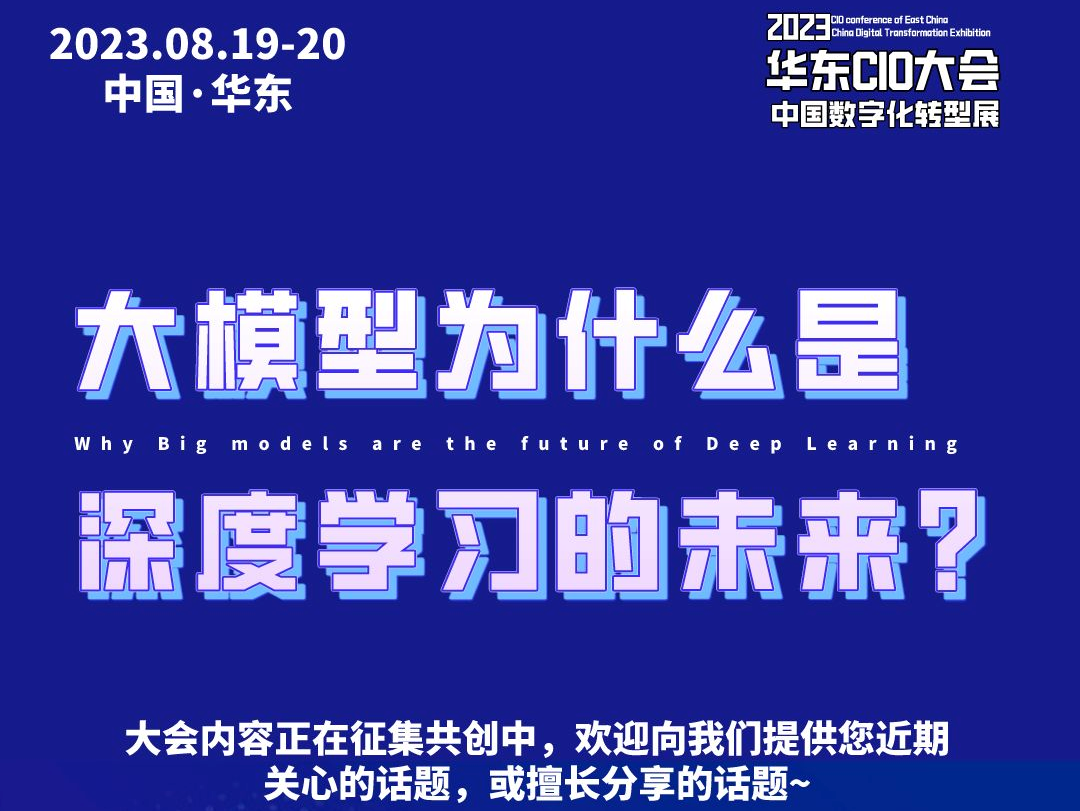 所以不管是哪个国家都在进行大模型方面的探讨和研究,所以大模型为什么是深度学习的未来?第五届华东CIO大会、2023中国数字化转型展将于8月19-20日举行,希望这场思想盛宴中能给你带来答案~