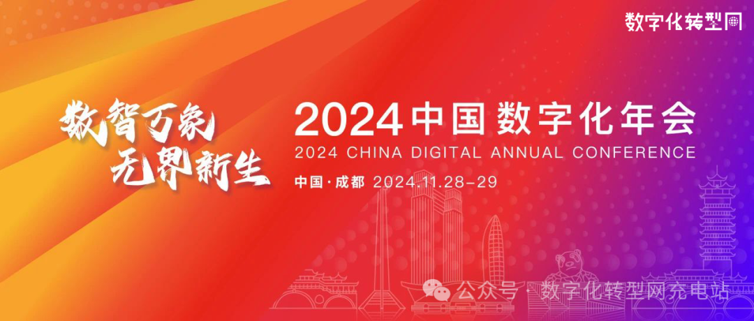 2024中国数字化年会将于11月28日-29日在成都开幕,本届数字化年会将以“数智万象 无界新生”为主题,设置2+2+5+4+2的活动框架,通过线上线下结合方式举办,包括2场主论坛、2场高峰论坛、5场专题论坛、4项特色活动、2场颁奖典礼等15项活动,汇聚来自政府、企业、学术界及社会各界的千余名精英与决策者,共同绘制数字化转型的宏伟蓝图,引领中国企业数字化进程。