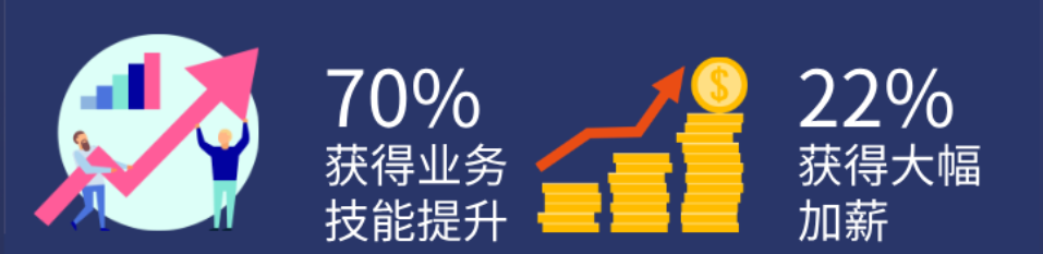 获得 CISA 认证的人员中,有 70% 的人表示通过该认证在业务技能方面得到了提升,22% 的人表示因为该认证获得了大幅加薪。