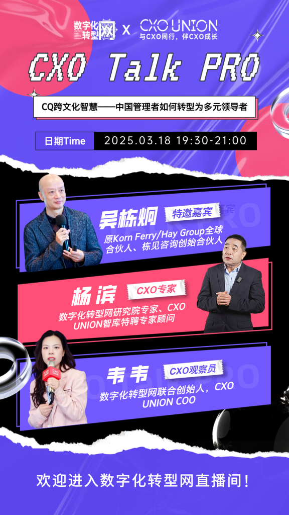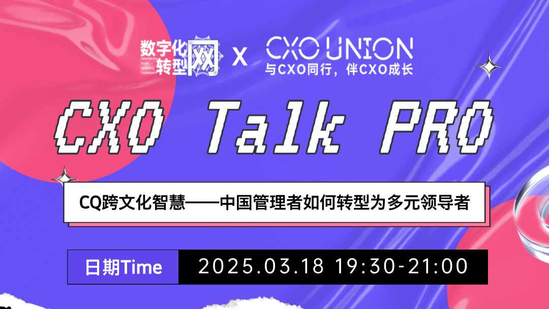 “CXO Talk PRO”线上直播栏目由专业与领先的产业信息服务平台数字化转型网(Professionalism Achieves Leadership 专业造就领导者)联合全球卓越的职业经理人发展平台CXO UNION(与CXO同行,伴CXO成长)发起。