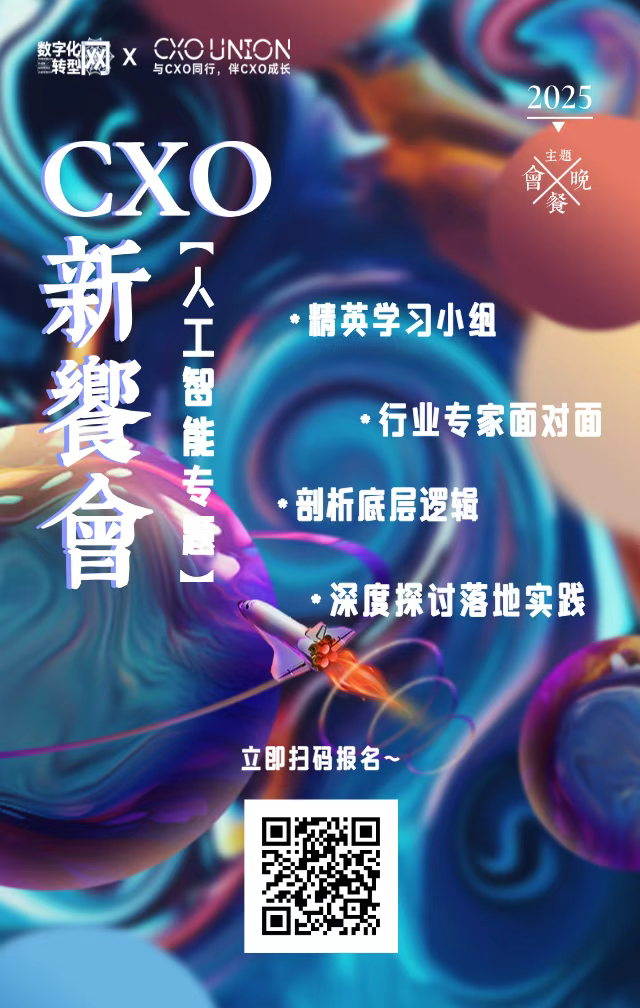 无论你是对 AI 技术充满好奇的企业管理者,还是渴望突破发展瓶颈的行业先锋,这场 CXO 新飨会都将是你不容错过的机遇。席位有限,速来报名,抢占与行业大咖对话的宝贵机会!